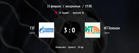 ГЭТ (3:0) ИТ-Телеком 15-02-2026, 08:42 0 17 ⚔️ #Чемпионатгородасургута ГЭТ - ИТ-Телеком 📆 ⏰ 15 февраля / 19:00 📍 СК Дружба (г. Сургут, ул. 50 Лет ВЛКСМ, д. 9А) Комментарии (0) Добавить комментарий Отправить